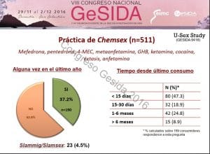 Otra encuesta reciente publicada a finales del 2016, realizada a 486 hombres que habían participado en sesiones de chemsex muestran unas cifras de consumo por esta vía de entre el 2 y el 11%. Los autores señalan que “Se puede afirmar que el slam es una práctica minoritaria entre los usuarios de chemsex en España. “ y destacan que casi el 90% de las personas que realizaron esta práctica nunca compartían material de inyección.